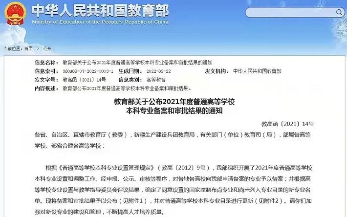 近日,教育部公布了《2021年度普通高等学校本科专业备案和审批结果的通知》(教高函〔2021〕14号),我校获批新增“集成电路设计与集成系统”本科专业。