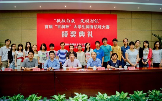 6月5日晚,“挑战自我 发现潜能”上海应用技术学院首届“百润杯”闻香识味大赛颁奖典礼在图书馆B101隆重举行。副校长刘宇陆出席,上海百润香精香料股份有限公司技术副总周永生,香料学院、工程创新学院相关领导及参赛学生200余人参加典礼。