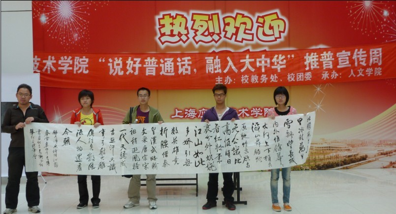 9月11日至17日是第14届全国推广普通话活动周。为进一步提高全校师生的语言文字规范意识和应用水平,充分发挥学校在普及普通话和规范汉字中的基础作用,弘扬中华优秀传统文化,为建党90周年献礼,我校根据市语委、市教委相关文件要求,围绕本届推普周“提升国家通用语言文字应用能力,弘扬中华优秀文化传统”的主题,结合学校自身特色,开展了上海应用技术学院第14届“推普周”系列活动。