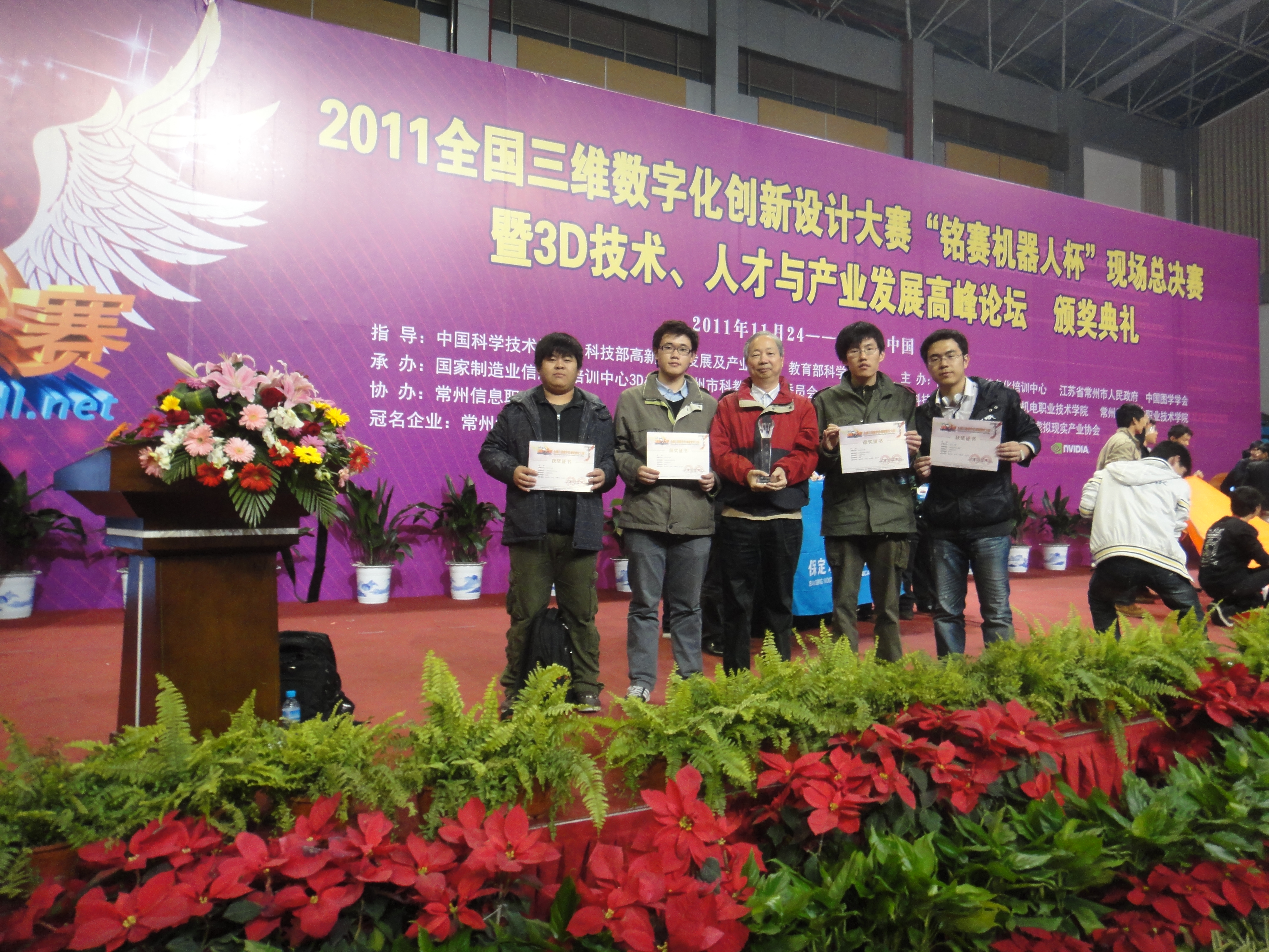 11月24日-28日,同类竞赛中全国规模最大、规格最高、水平最强、影响最广的“2011全国3D大赛现场总决赛”暨“3D技术、人才与产业发展高峰论坛”在江苏常州举行。我校机械学院学生柴宗训、吴军、孙瀚青和宋志平组成的“火焰高之队”在谈理老师的带领下,获全国三等奖的好成绩。