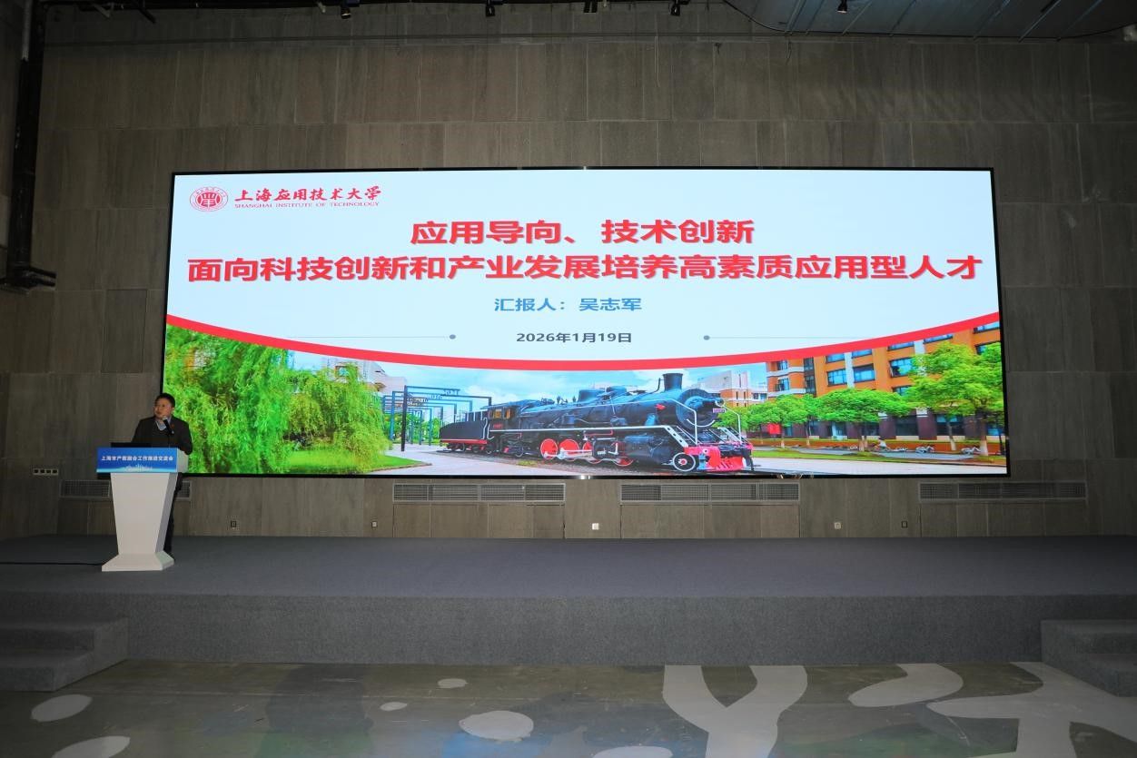2026年1月19日,由上海市发展和改革委员会、上海市教育委员会指导,上海市产教融合型城市建设促进中心主办的“上海市产教融合工作推进交流会”在沪成功举行。本次会议旨在进一步深化产教融合,促进政府、学校、企业三方深度联动,完善协同育人生态。作为上海市应用型本科高校人才培养模式改革试点单位之一,学校应邀参会。副校长吴志军代表学校作专题分享与宣介,本科生院、研究生院、科研院、继续教育学院等部门负责人一同参会。