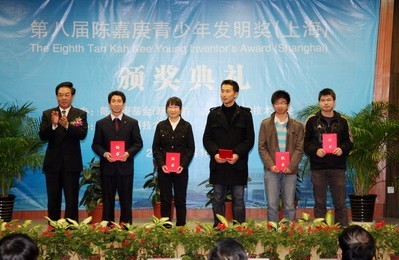 (2)第八届陈嘉庚青少年发明奖(上海)颁奖典礼于4月16日下午在我校举行。全市有12所高校和66所中小学向本届发明奖提交了高质量的发明作品,共征集到发明作品338件,经过专家组评审,共有71件作品获奖,其中二等奖20件、三等奖41件,鼓励奖10件,一等奖空缺。其中我校获1个二等奖、3个三等奖:化工学院学生周信光、方超、陈娇的“口香糖污迹清除剂”获二等奖,我校机电学院、城建学院、化工学院各有1个项目获三等奖。