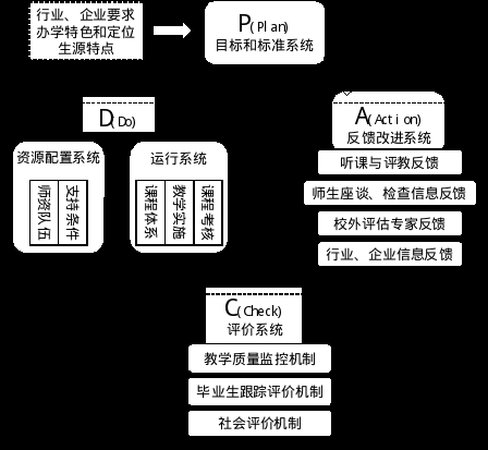 从经济社会发展对高水平应用型人才的需求和学校办学定位、生源特点出发,按照“培养目标—毕业要求—课程教学”的内在逻辑确定各层次和各环节的目标及其标准。此系统在整个质量保障体系中属于顶层设计,强调行业和企业的参与,居于统领地位。