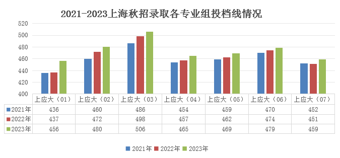 纵向(近三年)对比分析我校在上海市的生源情况,各专业组投档线均有上涨,最大的变化是上应大(03)组,2023年已全部在特招线上。横向对比分析我校各专业组在上海的生源情况,上应大(03)强势突出,在同类高校中仅次于上海电力01组,投档线高于上海海洋、工程大、二工大、立信金融、商学院和电机的所有专业组;上应大(02)和(06)在八所高校中处于中等偏上位置,其投档线高于二工大、商学院和电机的所有专业组,仅次于工程大01组和05组、电力04组和03组及立信金融02组。